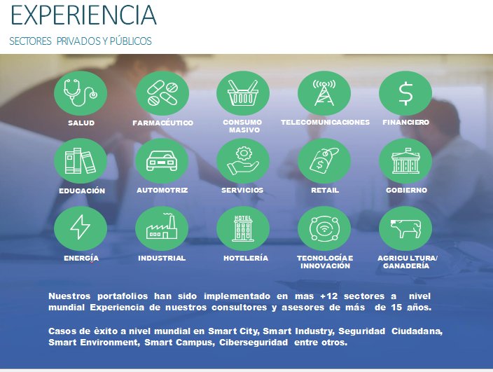 Somos tu socio estratégico para construir tu territorio digital e inteligente con implementación de tecnologías emergentes que incluyen: