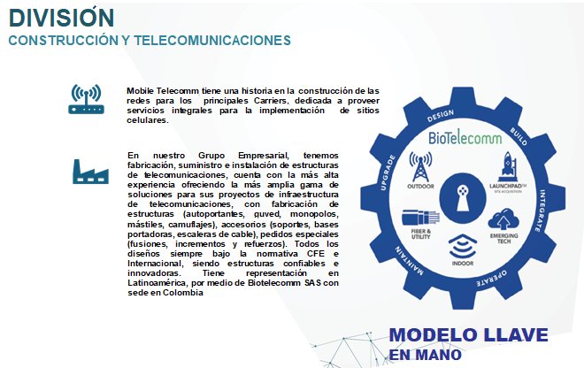 btctechco ofrece servicios de mantenimiento a Carriers y MNOs en Colombia - México - USA. Fábrica de estructuras y alianzas estratégicas con fabricas para la adquisición de equipamiento. (Instalación de RF y MW, Diseño e Ingeniería y Mantenimiento). Gestión de activos para operadores locales y gobierno (Built to Suit) - propuesta inmobiliaria que responde a las exigencias industriales y de distribución que requieren las empresas en la actualidad. Servicios de comunicación gestionados con soluciones unificadas de voz, datos e IoT. Construcción de torres celulares y redes energía renovable, expansión de fibra alámbrica y zanjas de cable de banda ancha. Construcción de redes energía renovable, compromiso con la sostenibilidad. Integración de Energías Renovables: Uso de fuentes de energía renovable para alimentar la infraestructura de red, reduciendo la huella de carbono. Eficiencia Energética: Implementación de tecnologías que optimizan el consumo energético, promoviendo prácticas sostenibles en todas las operaciones. |