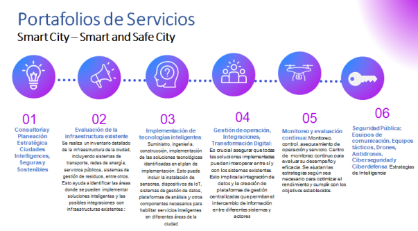Centro de Operaciones de Ciberseguridad (SSOC): Monitoreo gestion y respuesta a incidentes de seguridad y Smart City en tiempo real, con equipo de expertos en ciberseguridad y tecnologías emergentes. Incluye Centro Comando Integral Ciudades Seguras y Digitales, con prediciones de comportamiento basados en AI.